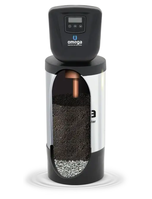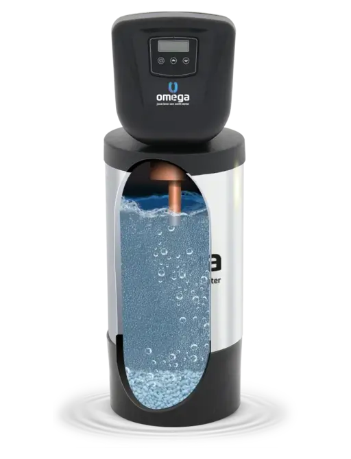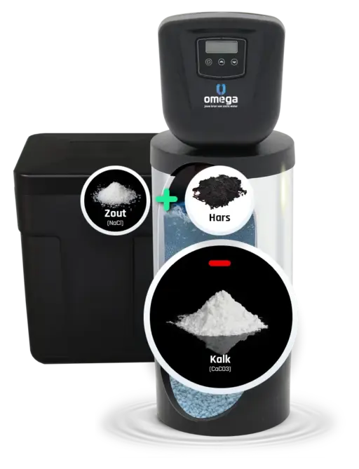 Een Omega waterontharder werkt met hoogwaardig kunsthars, waarmee alle kalkdeeltjes uit het water worden gefilterd.